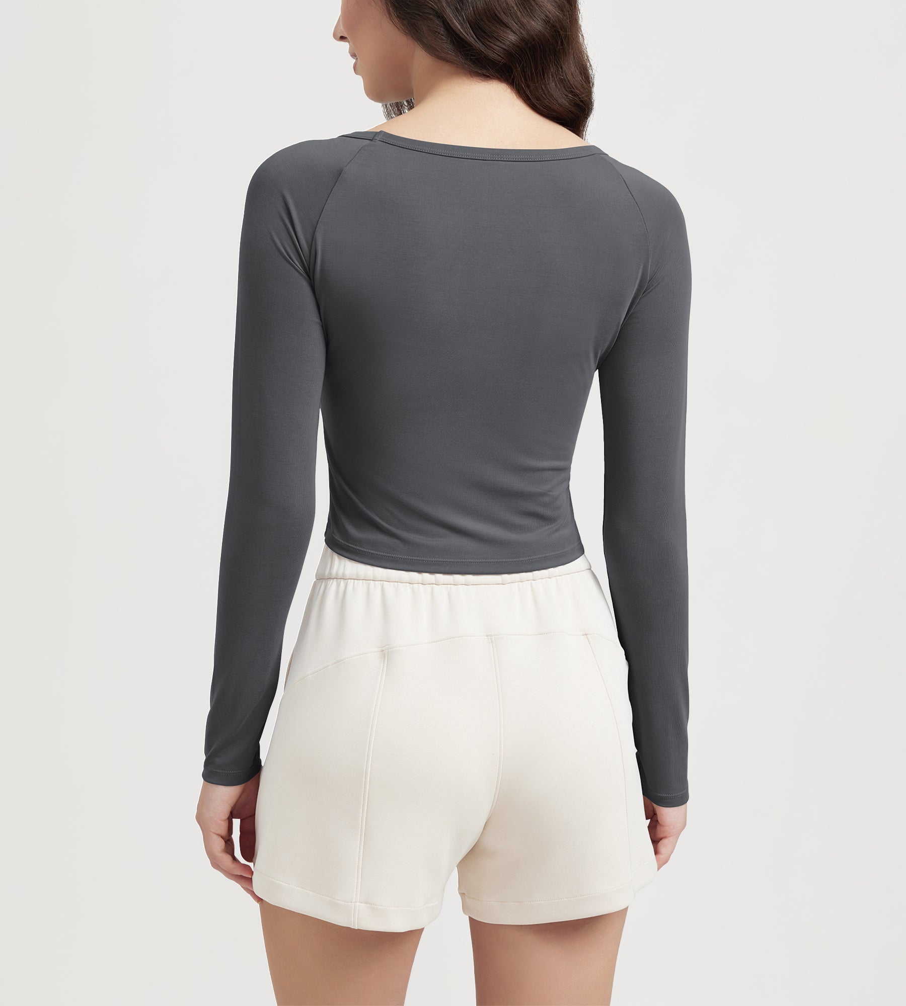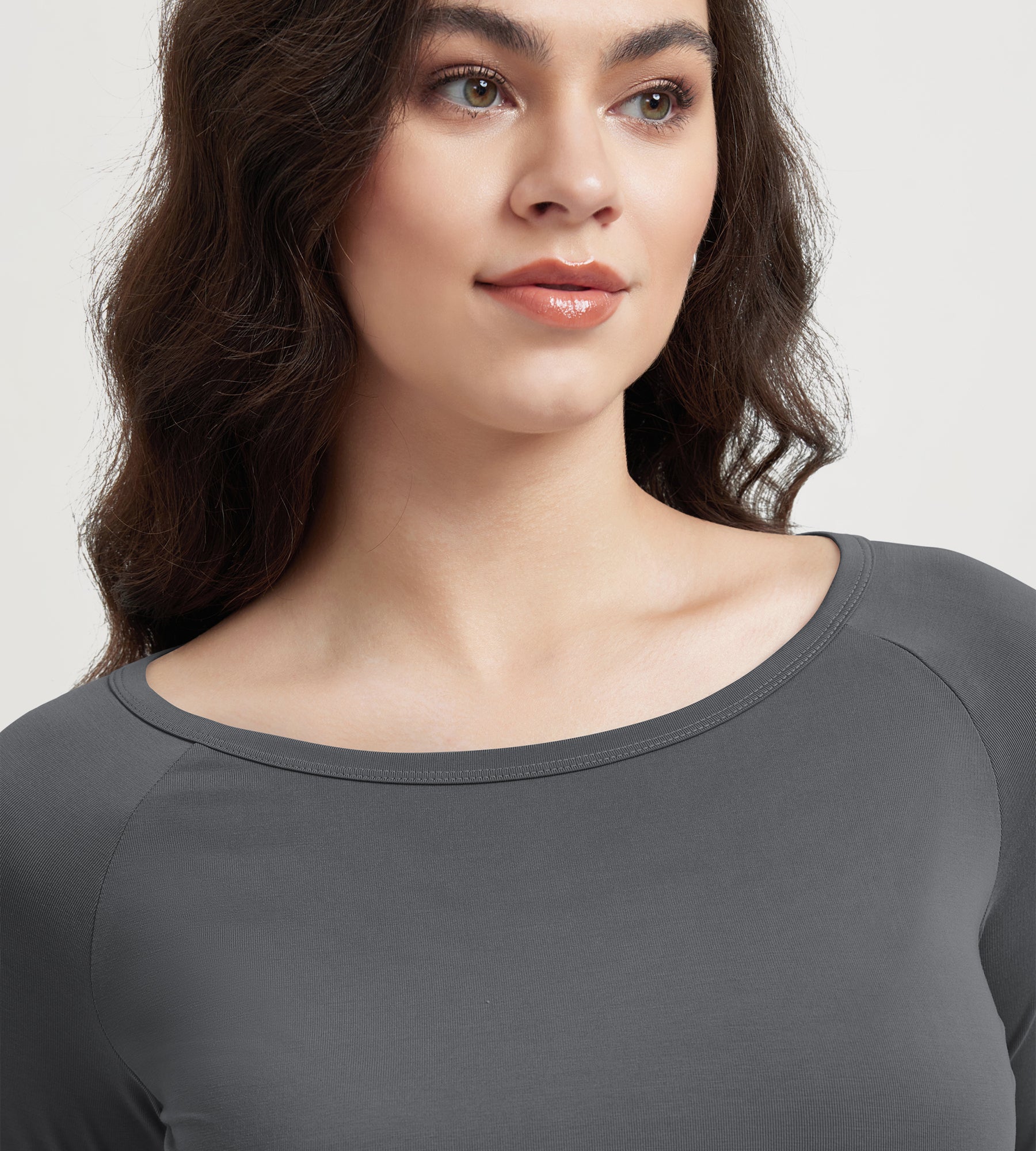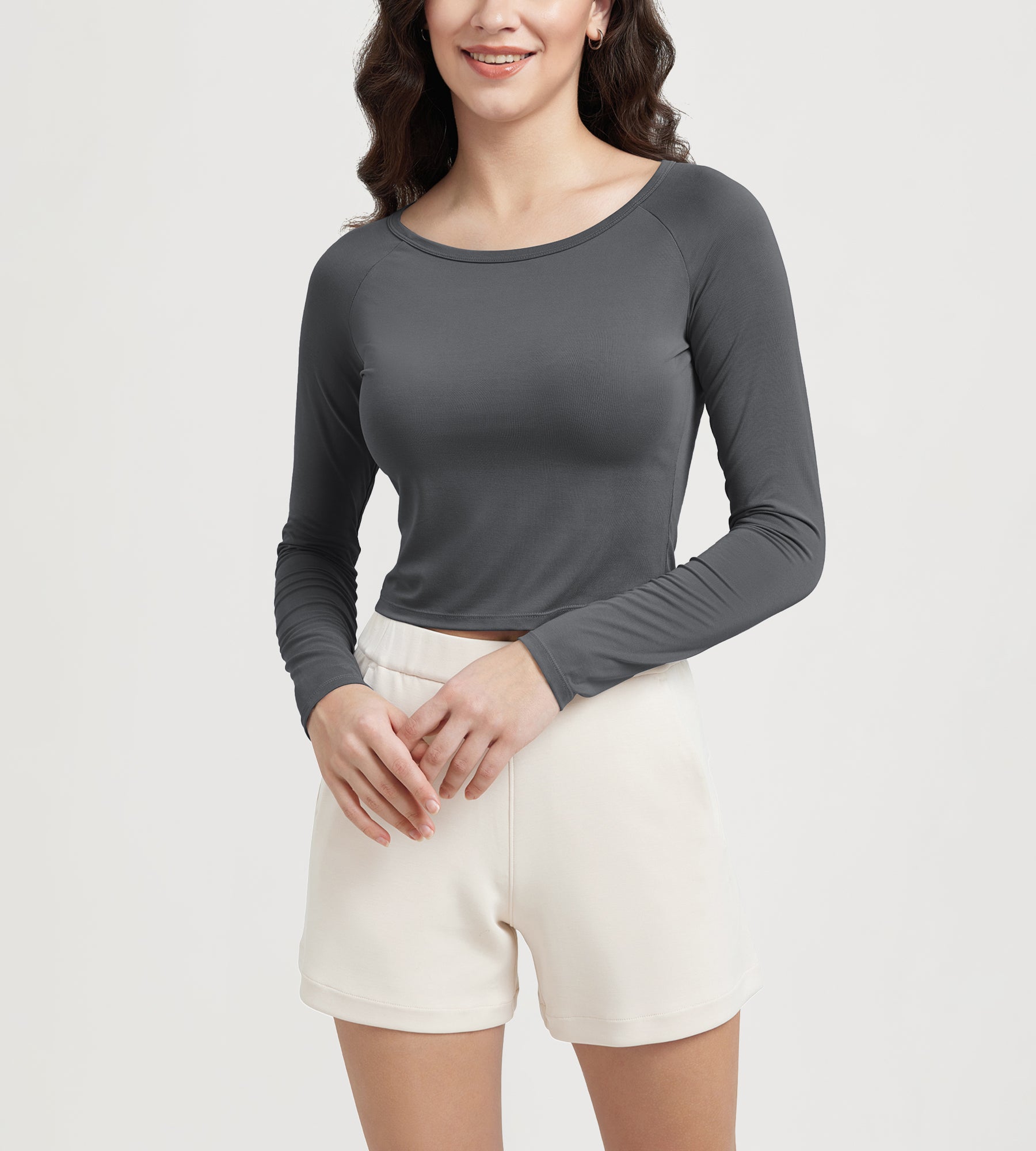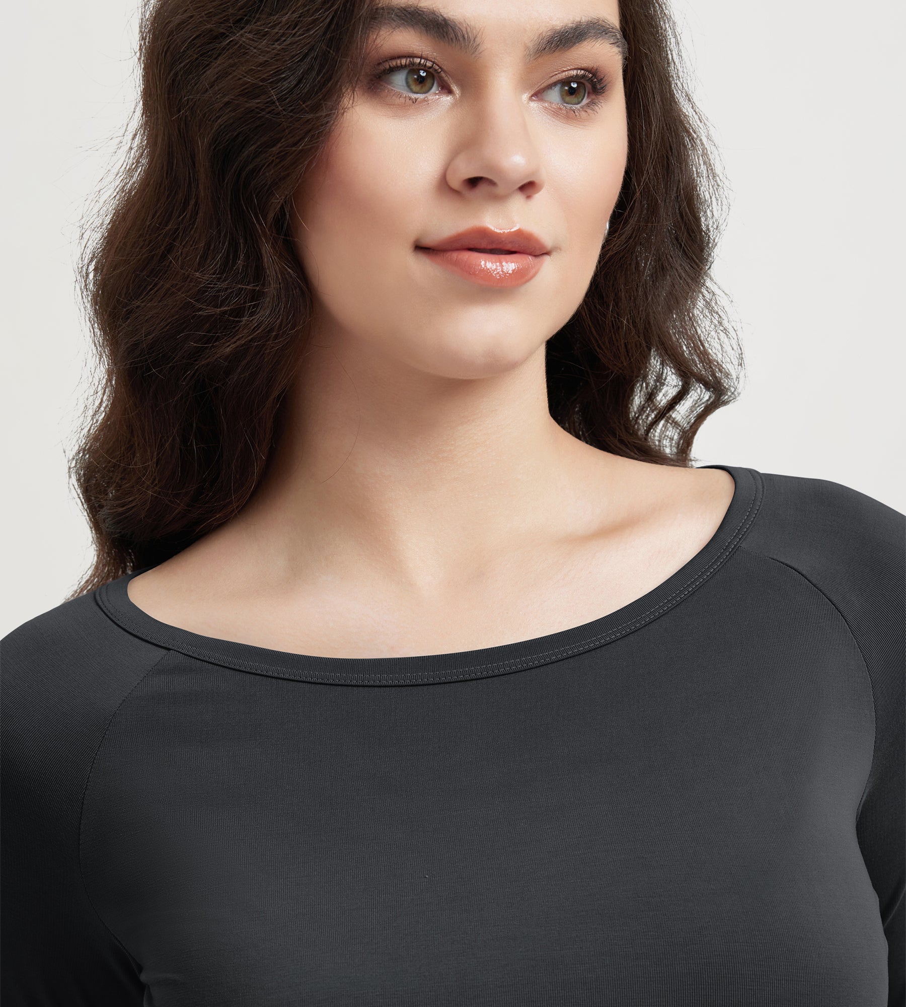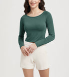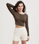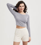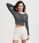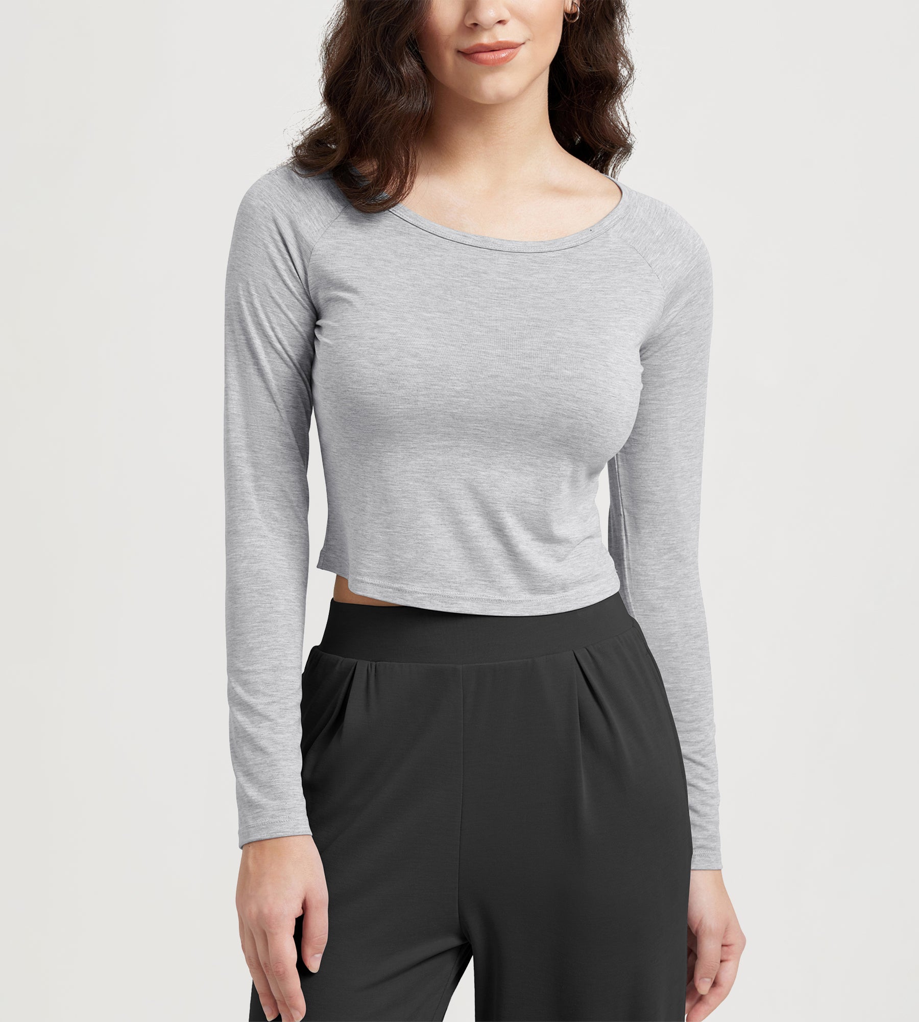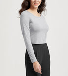 ODODOS Cropped Long Sleeve Tee, Wide Scoop Neck, Raglan Sleeves