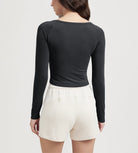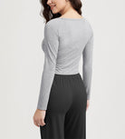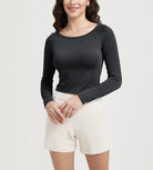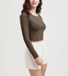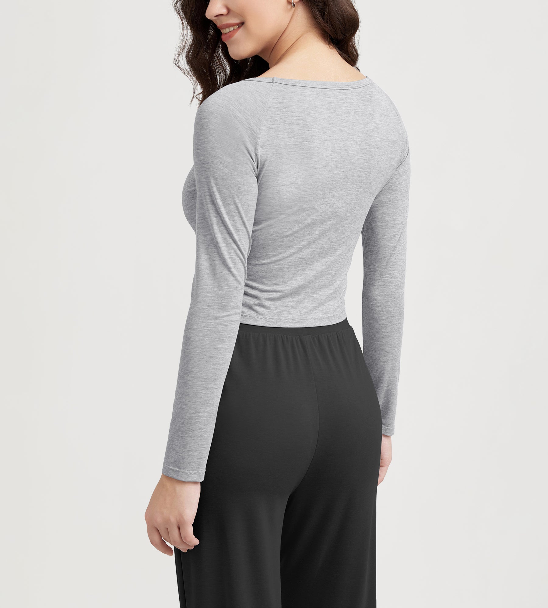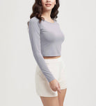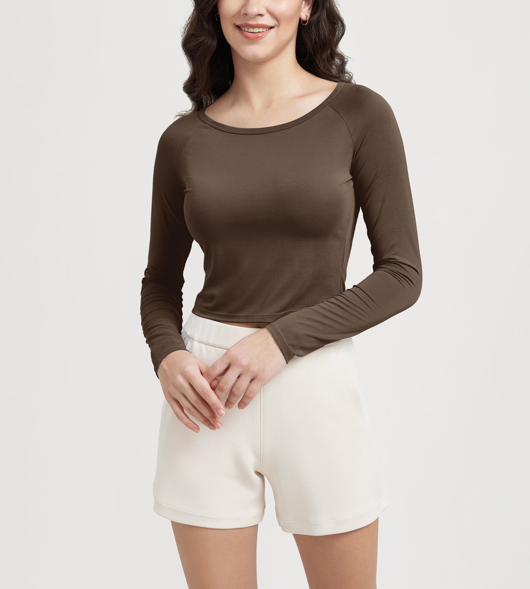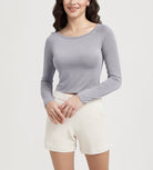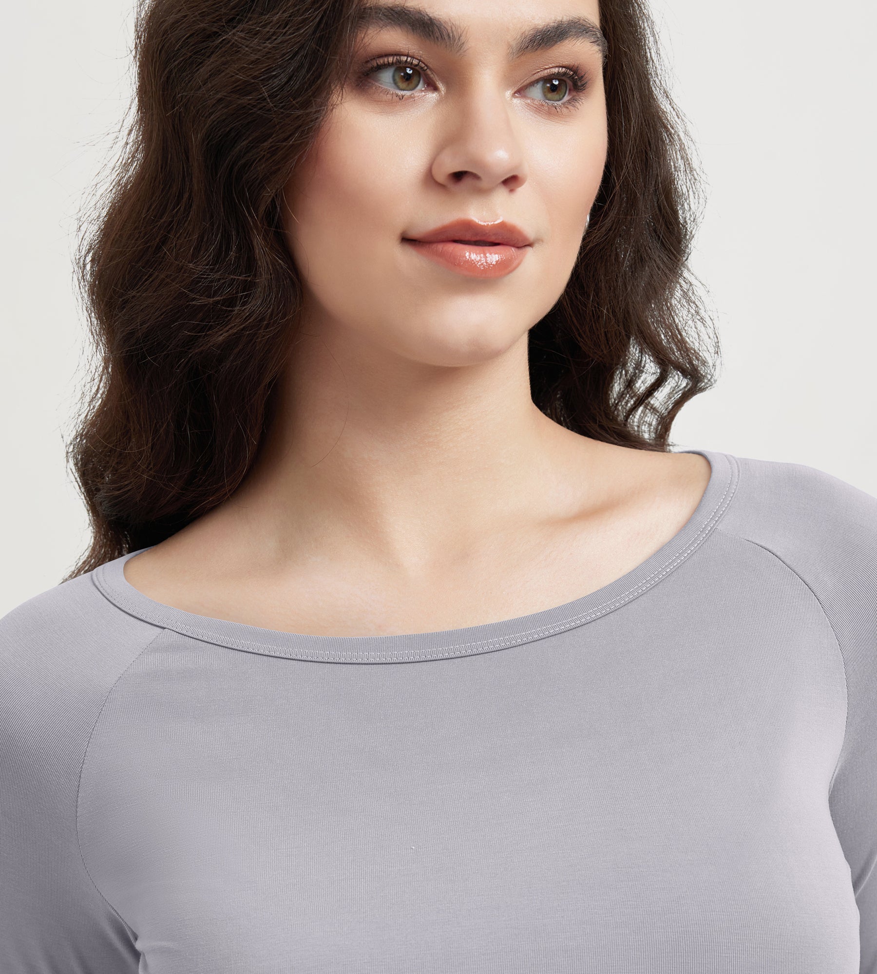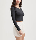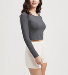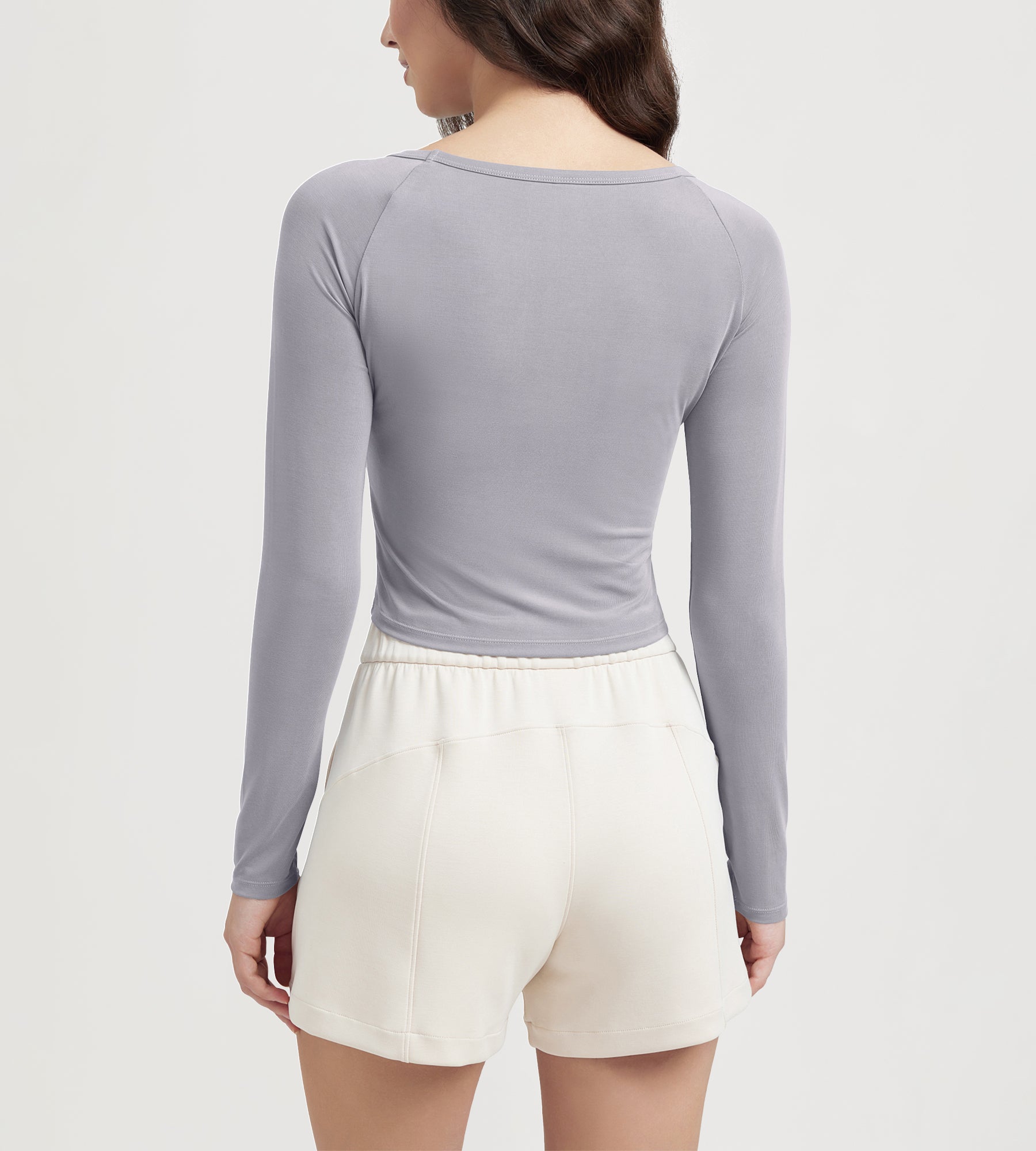 ODODOS Cropped Long Sleeve Tee, Wide Scoop Neck, Raglan Sleeves