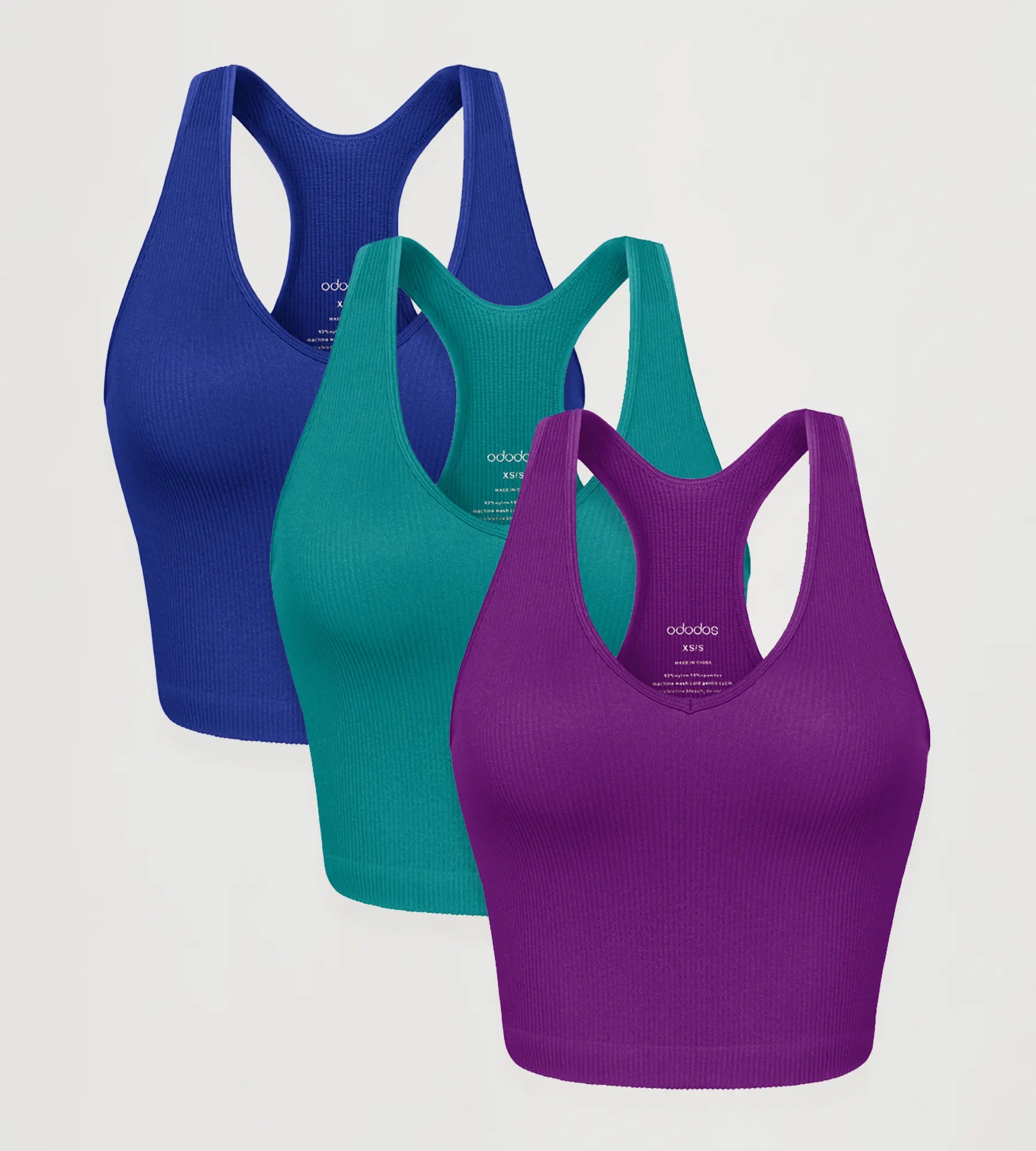 ODODOS 3-Pack Seamless Racerback Waist Length Tank Tops