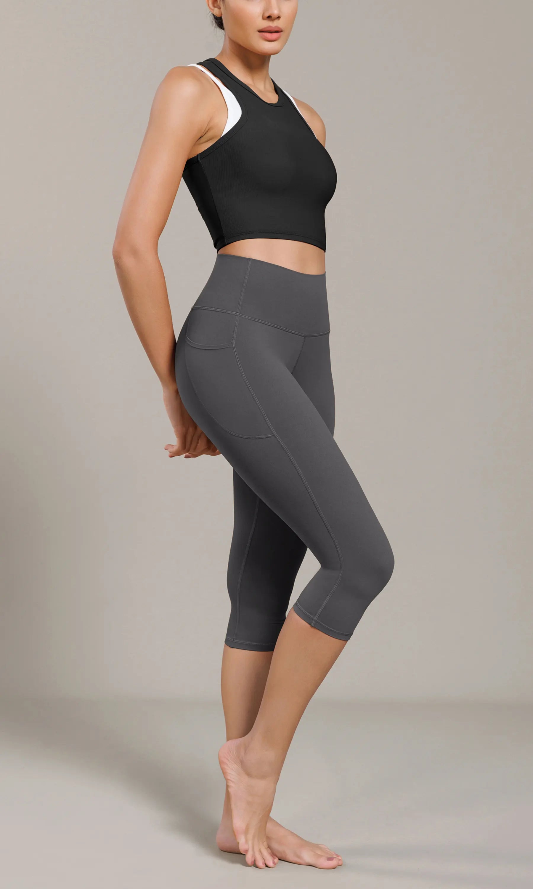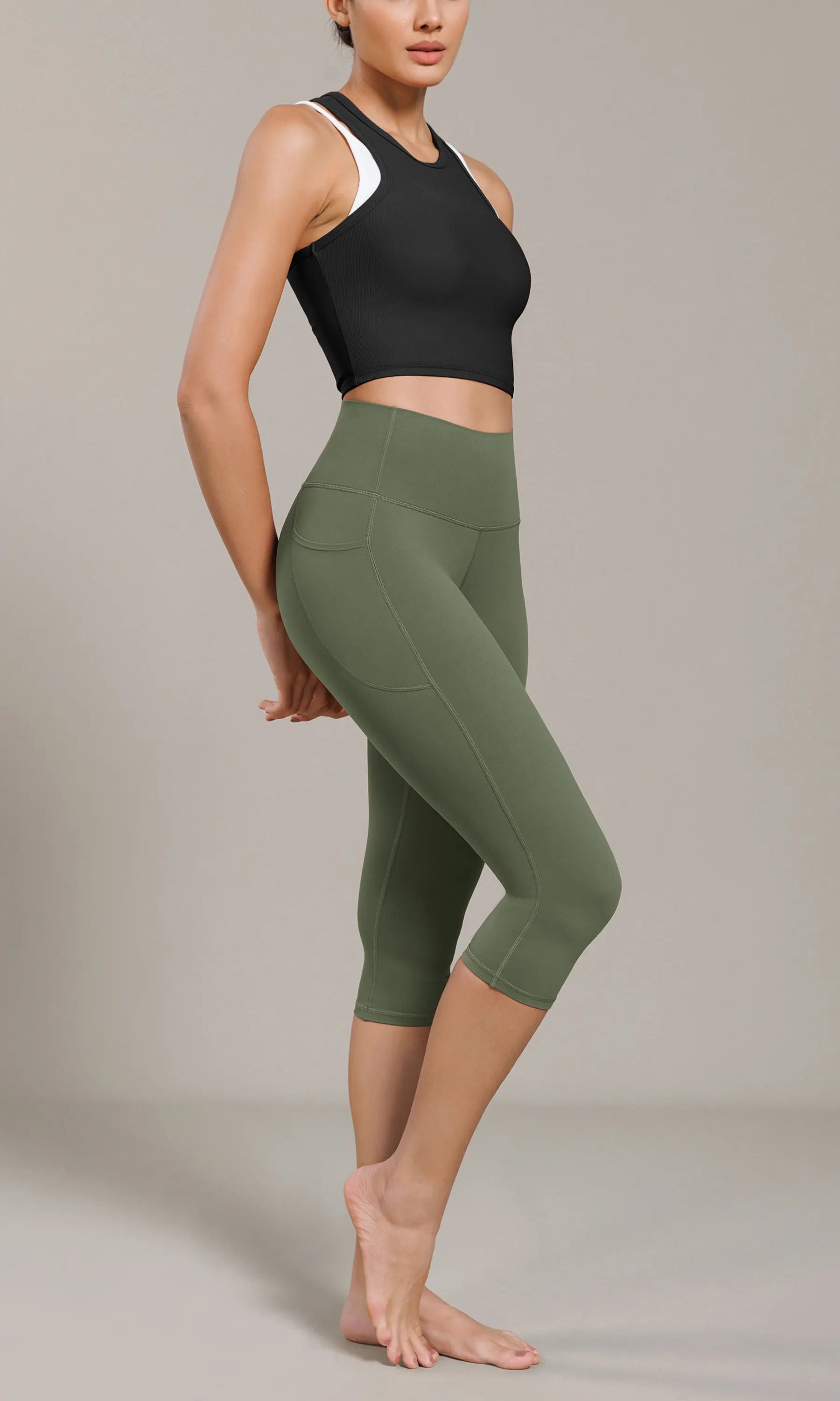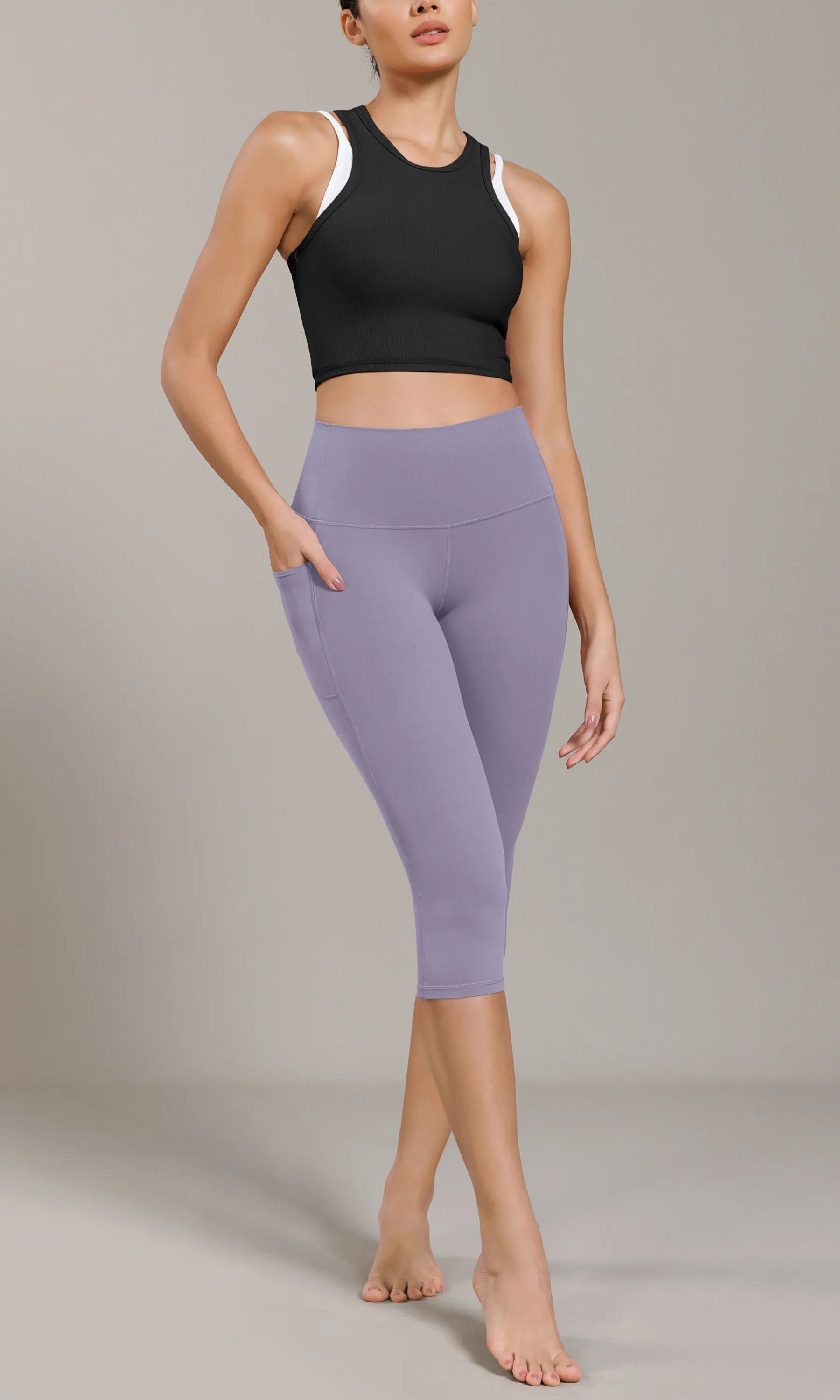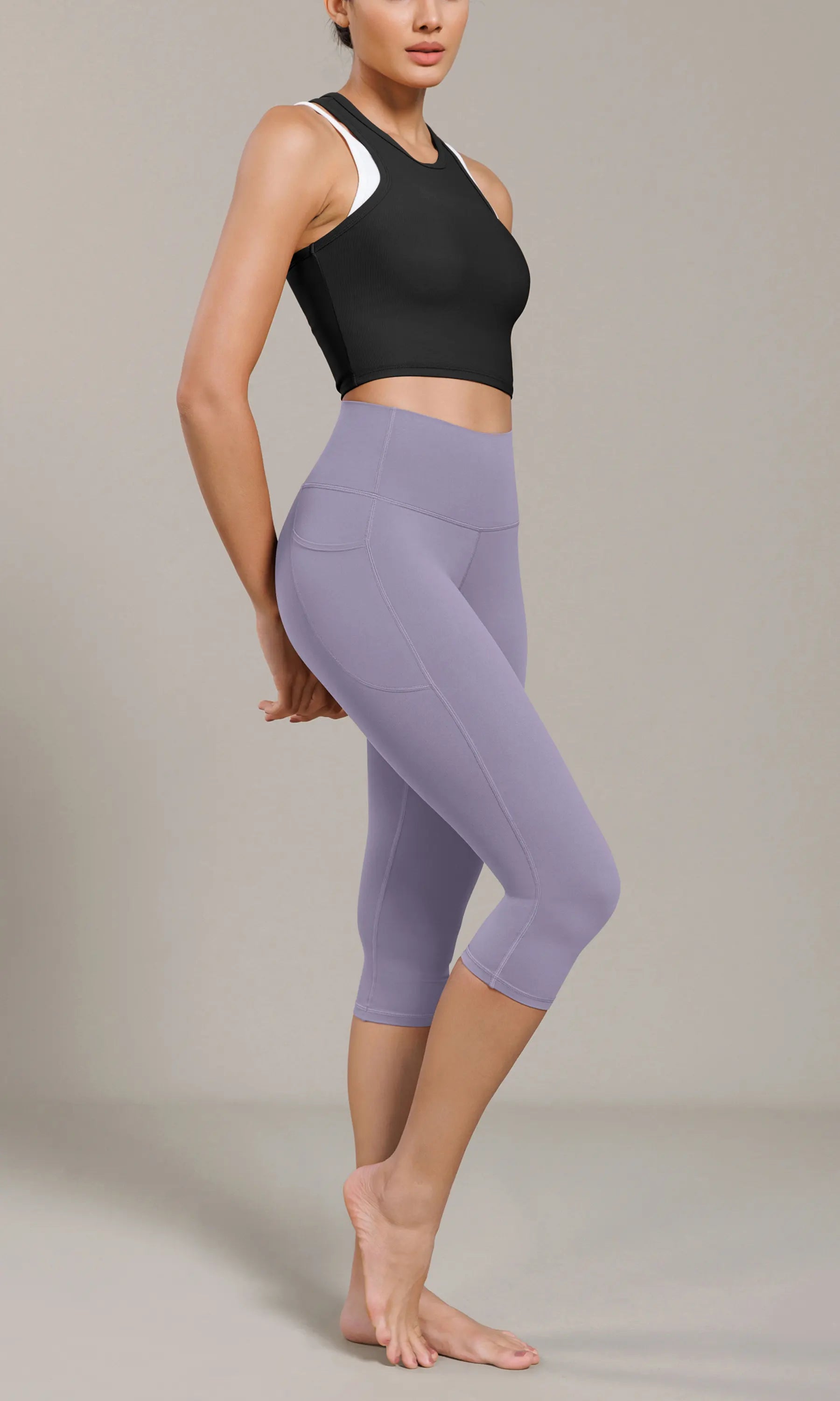 ODCLOUD 19" Lounge Yoga High Waist Capris Leggings with Pockets