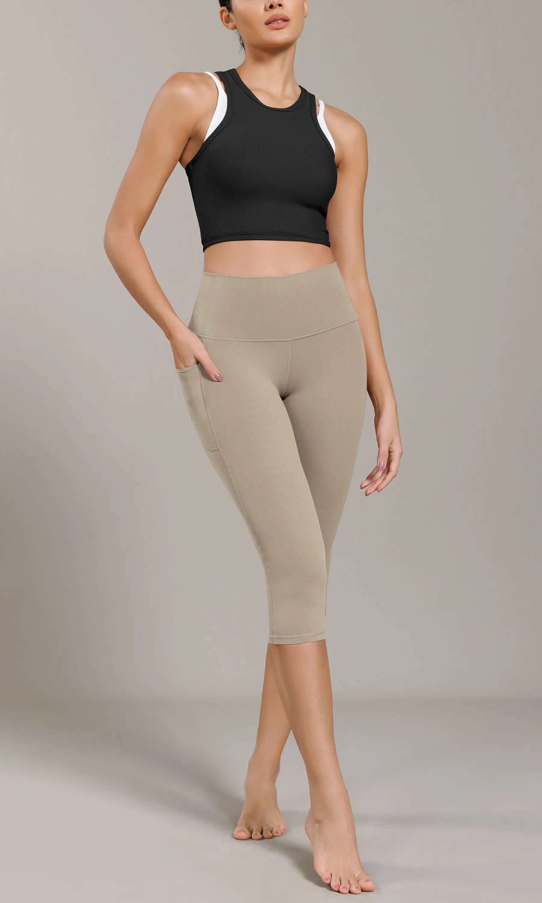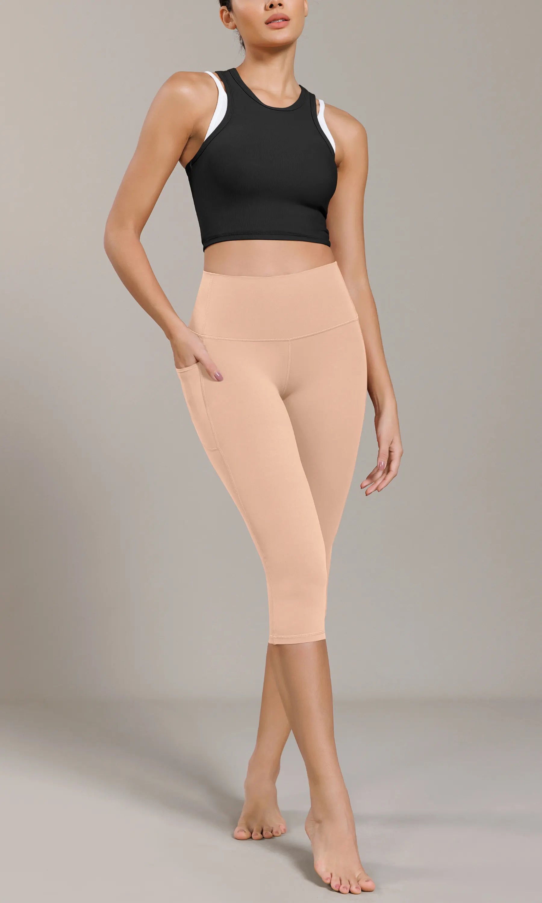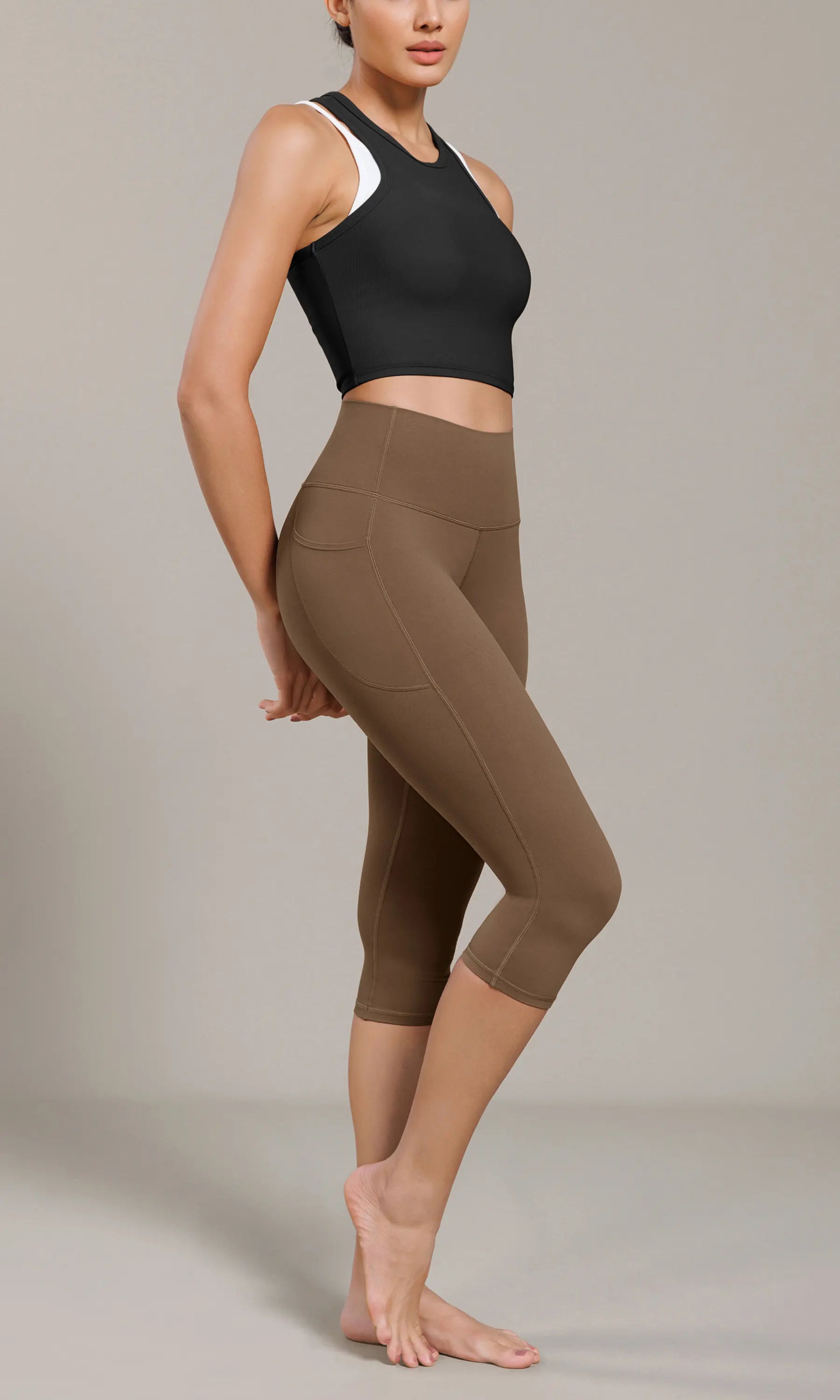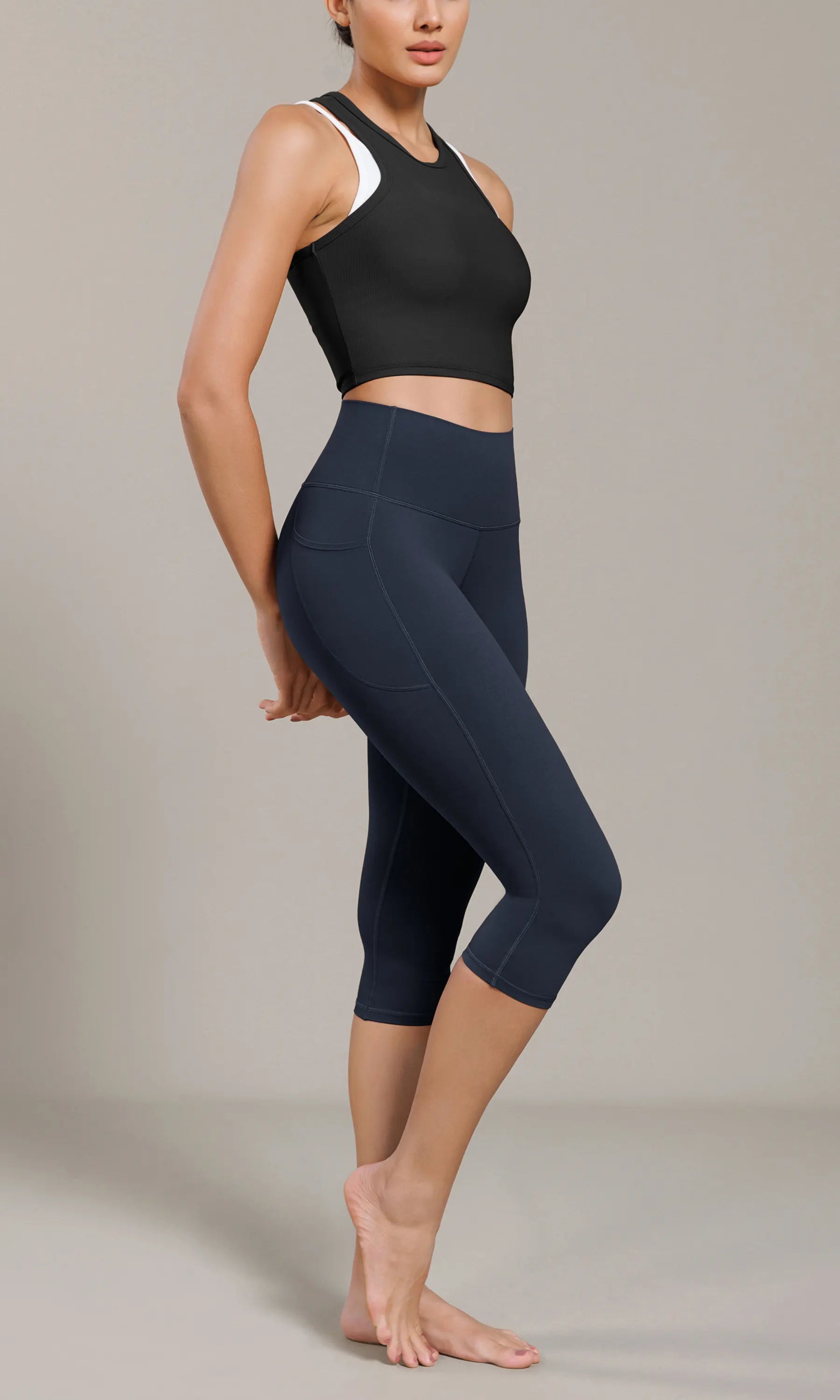 ODCLOUD 19" Lounge Yoga High Waist Capris Leggings with Pockets
