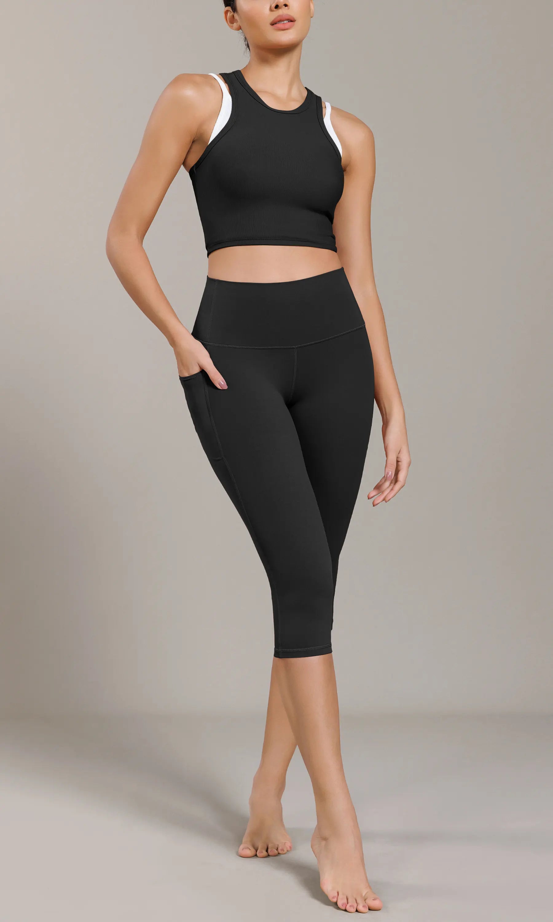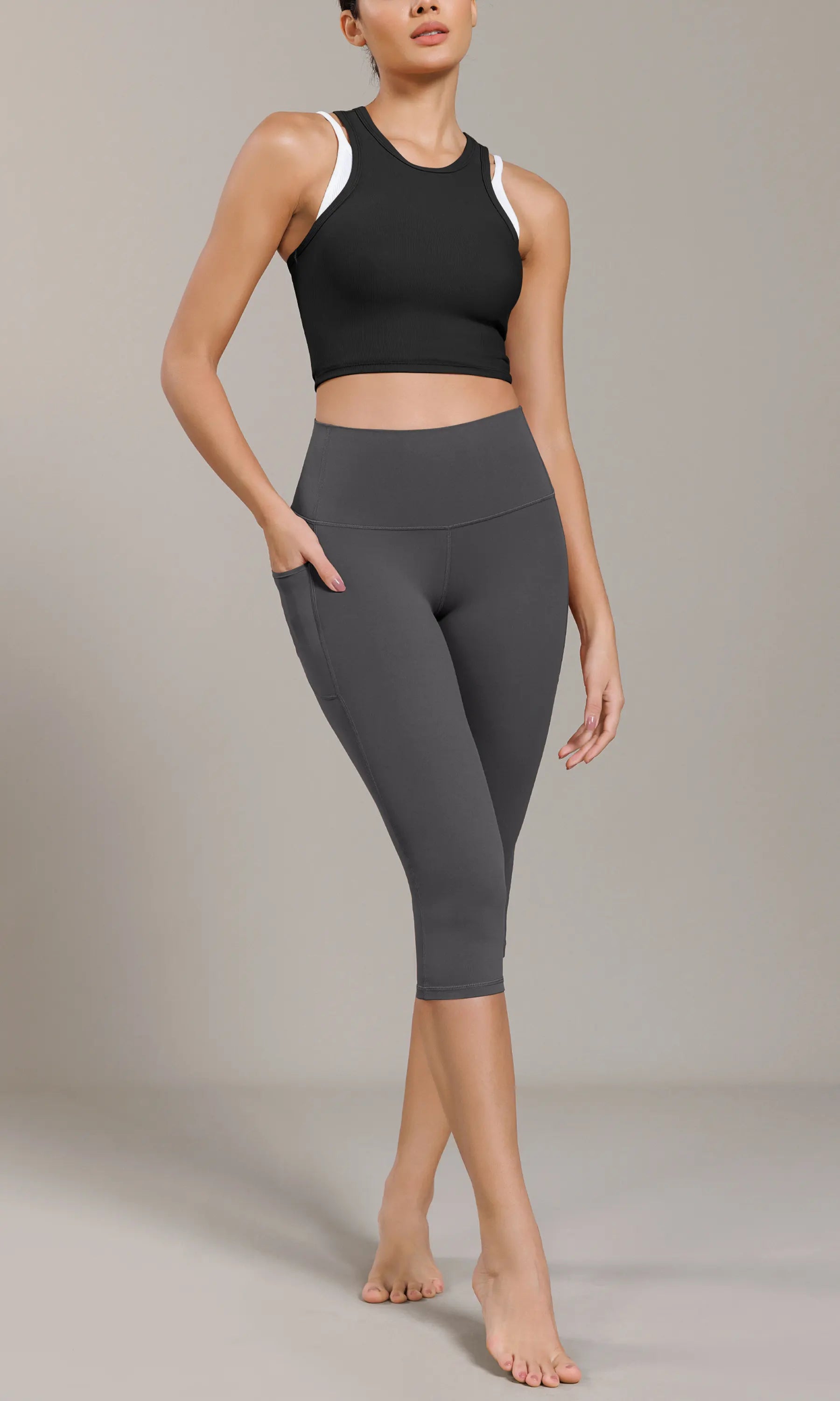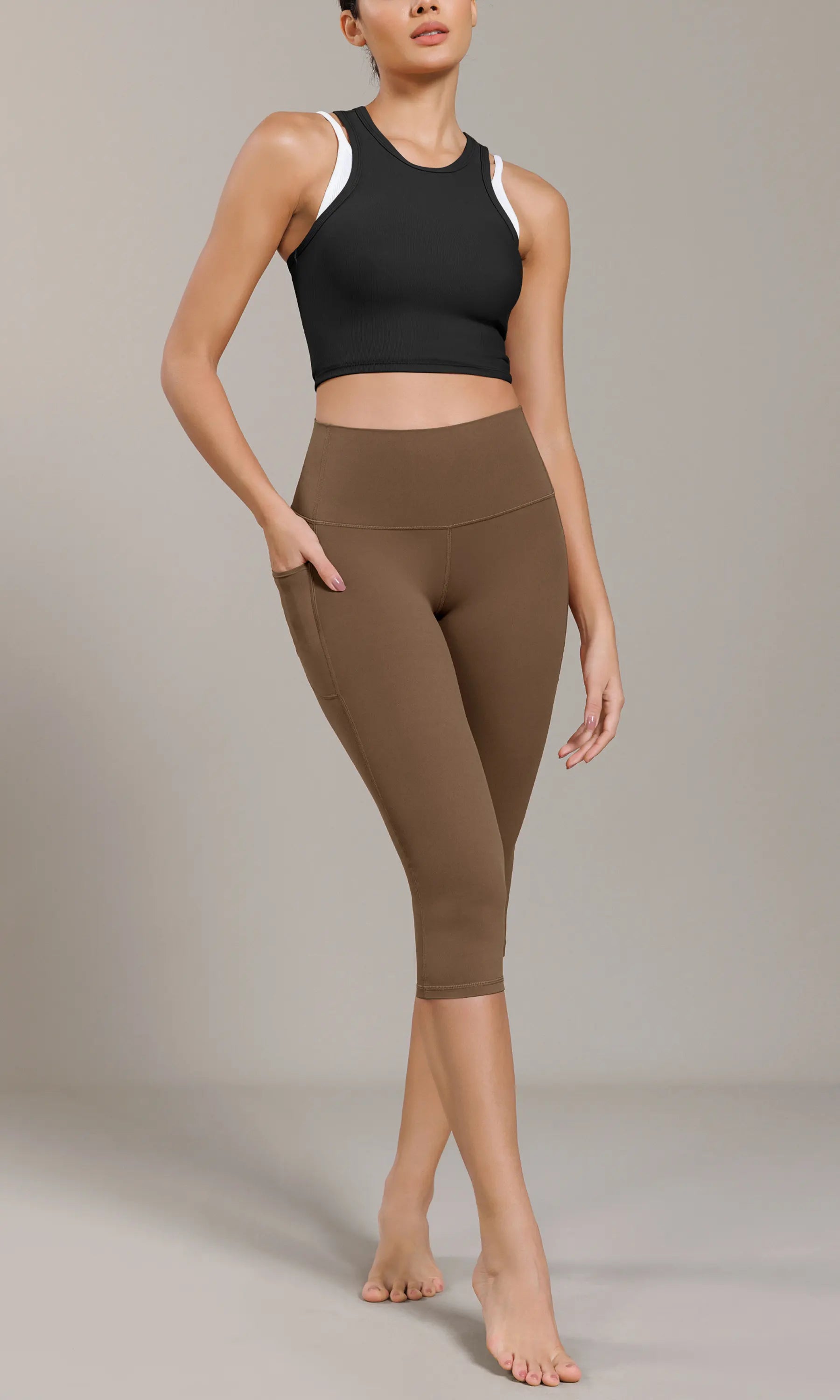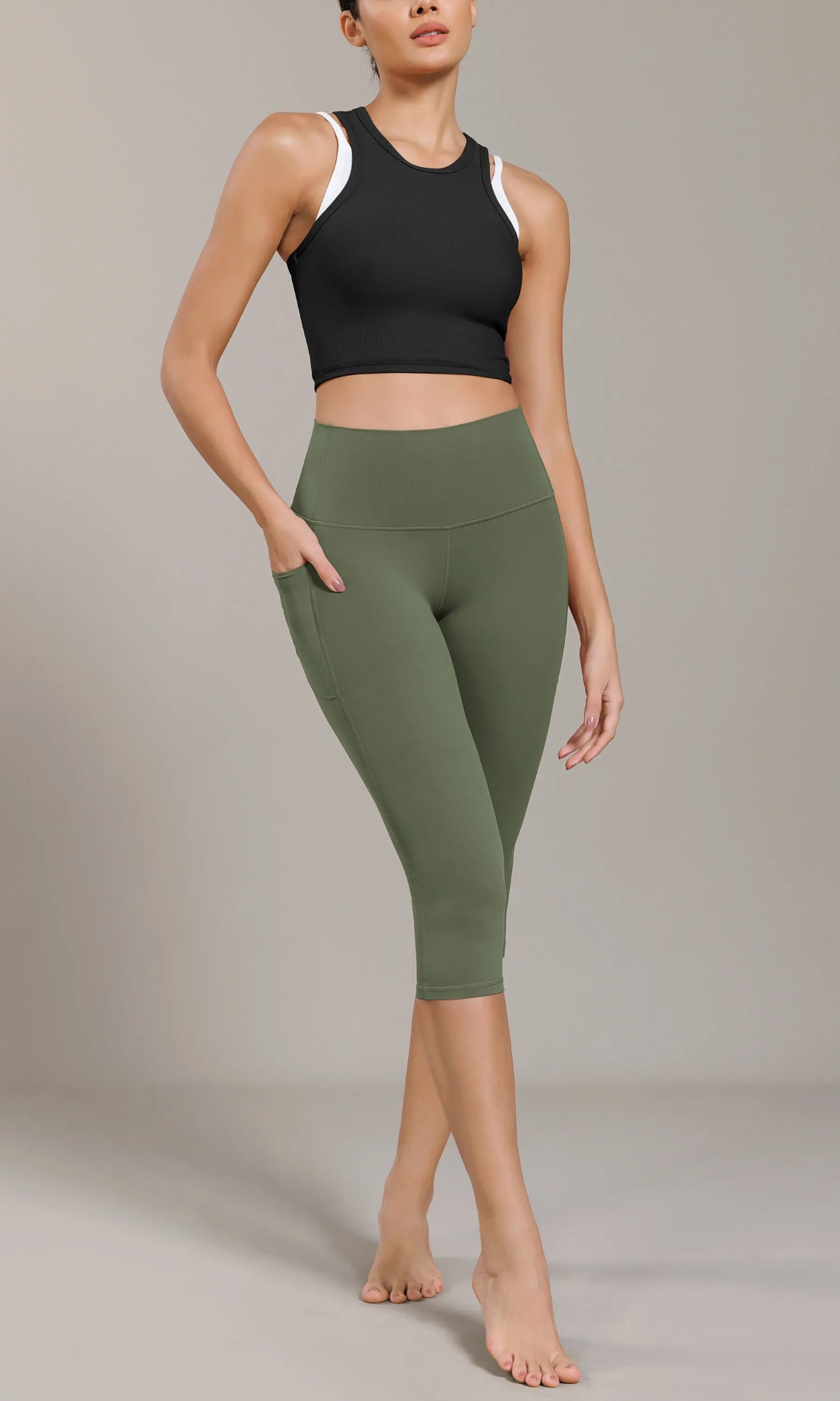 ODCLOUD 19" Lounge Yoga High Waist Capris Leggings with Pockets