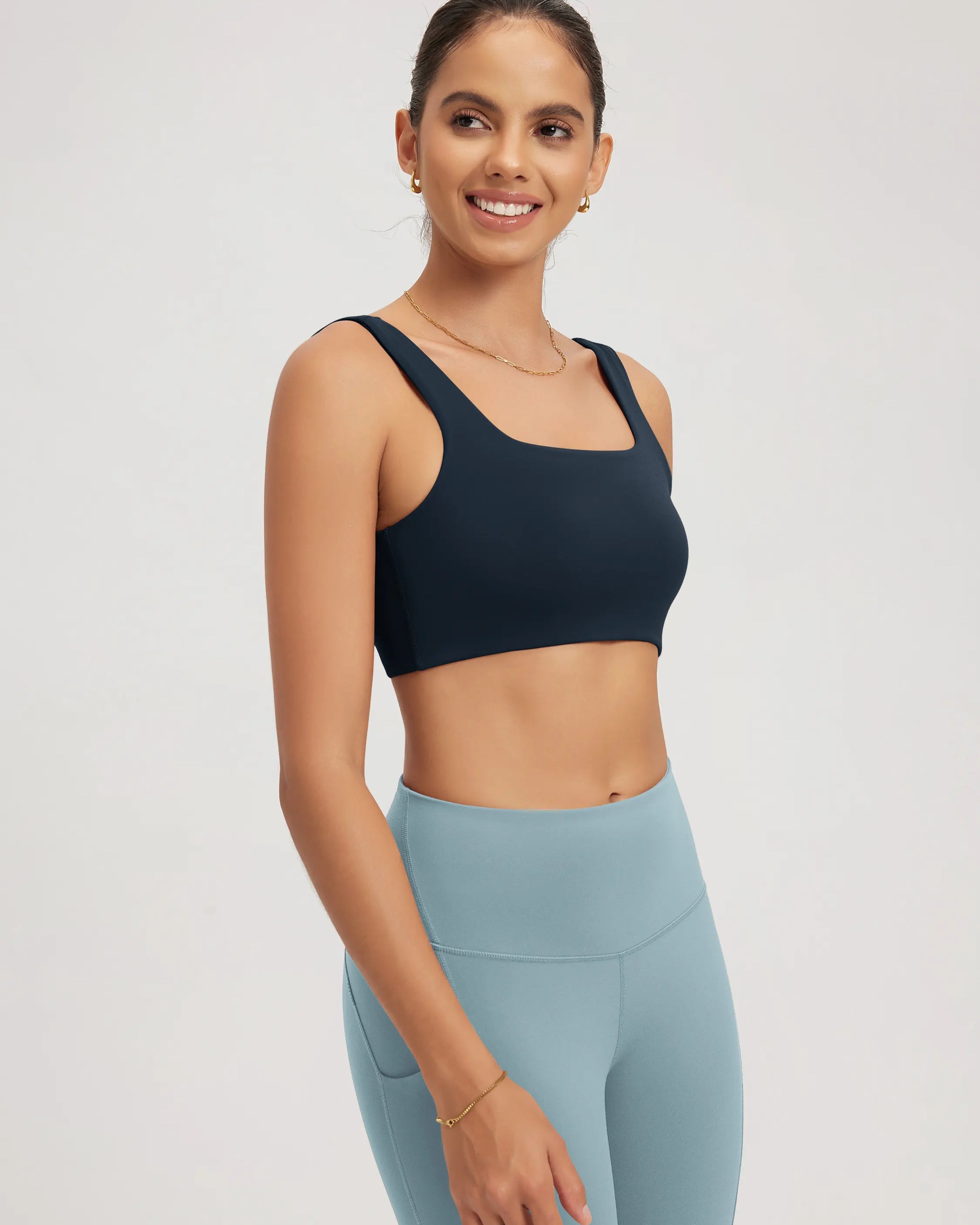 Try a racerback sports braΒ for added mobility, a sleek V-neck sports braΒ for low-cut layers, or a breathable U-back sports braΒ for hot studio days.
